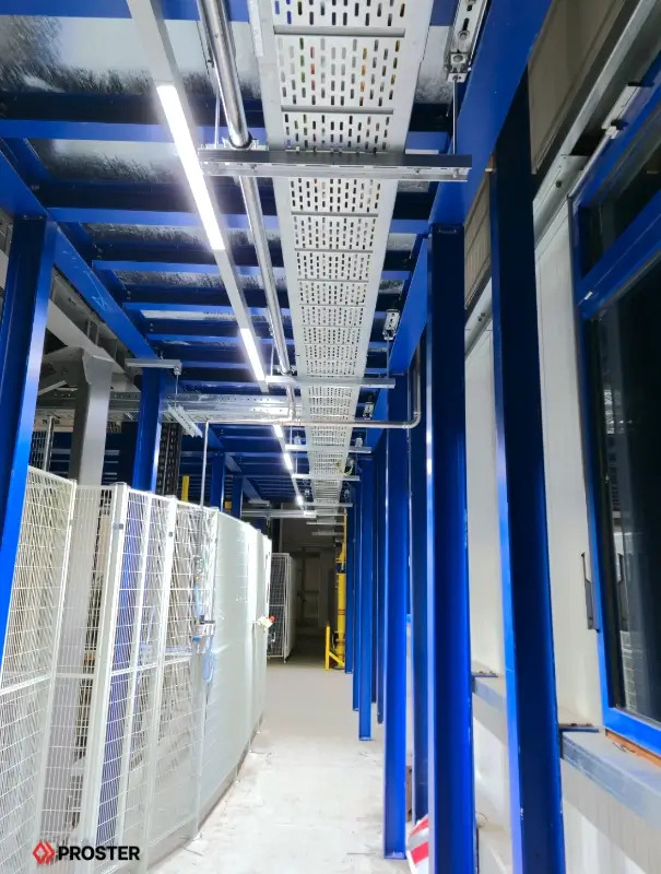- Montaż tras kablowych wraz z podłączeniem zasilania i systemów sterowania