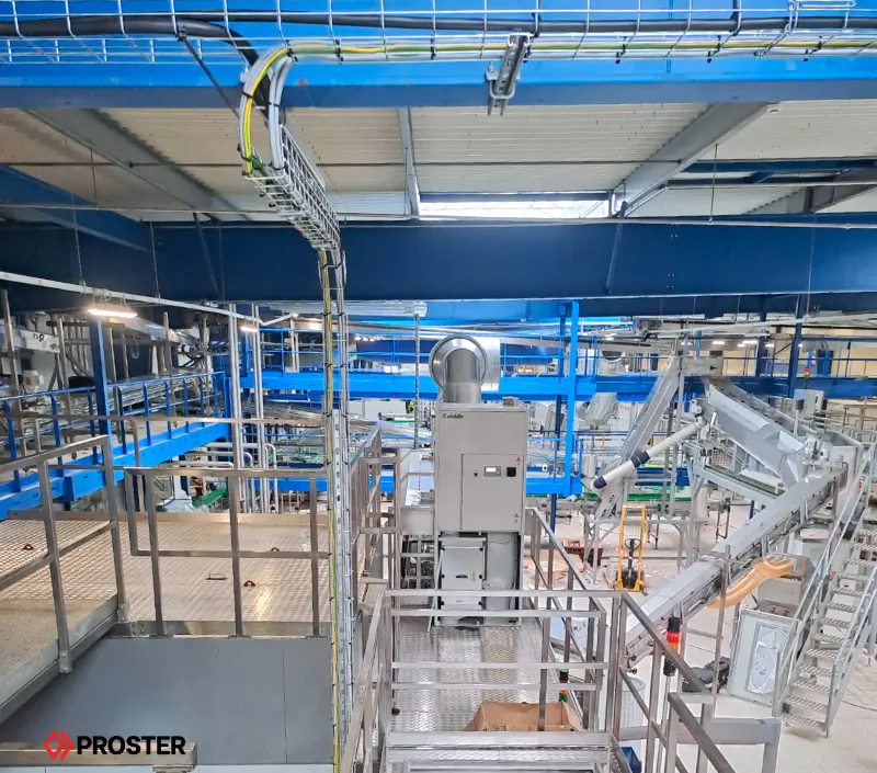 Po ustawieniu urządzeń przystąpiliśmy do ich zakotwienia w posadzce oraz podłączenia do instalacji elektrycznej. Równolegle zainstalowaliśmy systemy transportowe, w tym przenośniki modułowe i rolkowe. Każdy komponent został wyposażony w pełne okablowanie oraz osłony zabezpieczające, zgodnie z obowiązującymi normami bezpieczeństwa.