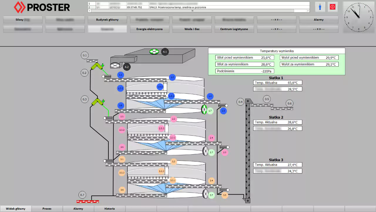System SCADA umożliwia ciągłe monitorowanie procesów w czasie rzeczywistym, co pozwala na szybką identyfikację potencjalnych problemów lub awarii. Nadzór procesów odbywa się z jednego miejsca. Możliwość natychmiastowego reagowania na zmiany warunków procesu pozwala utrzymać stabilność i efektywność operacji.