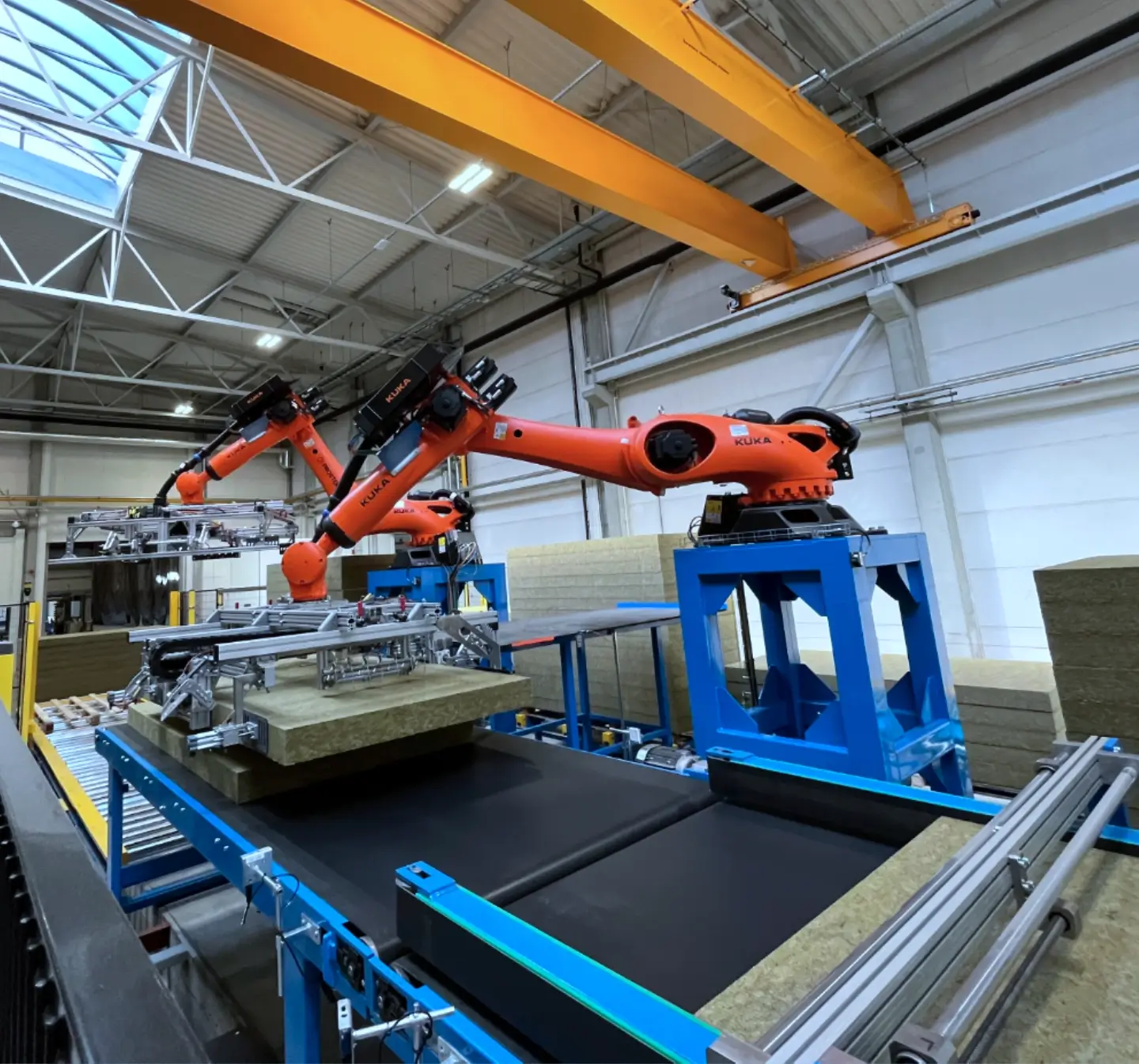 Najlepiej zobaczyć to na praktycznym przykładzie, na którym zwiększyliśmy wydajność depaletyzacji o 100%, zapewniliśmy rozległy bufor palet na transporterach, szybkie przezbrojenia pomiędzy rodzajami produktów, a także proste nadanie wydajności procesu.