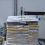 Kompaktowe stanowisko do paletyzacji worków z dwoma stanowiskami wyjściowymi oraz mniejszą zajmowaną powierzchnią hali.